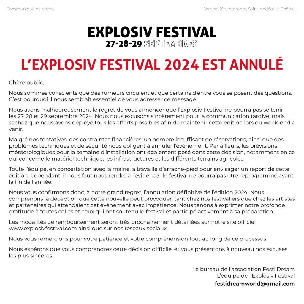 L’EXPLOSIV FESTIVAL 2024 EST ANNULÉ